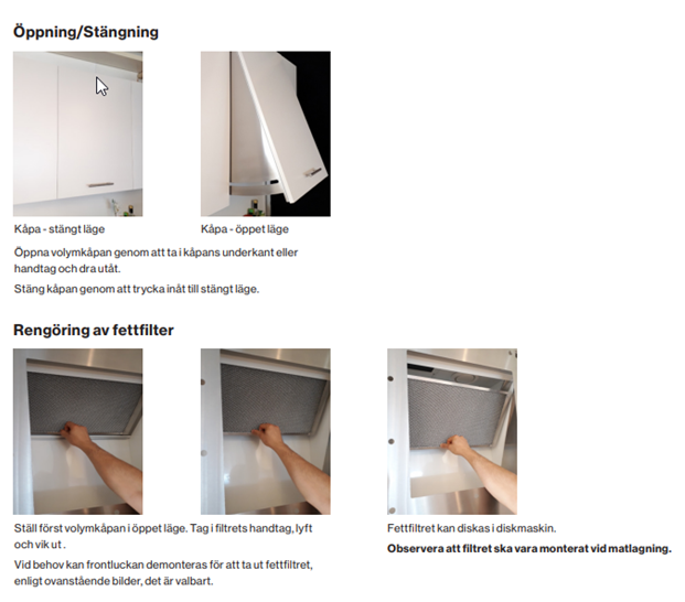 Här kan du läsa mer om köksfläkten och om hur filtret rengörs.